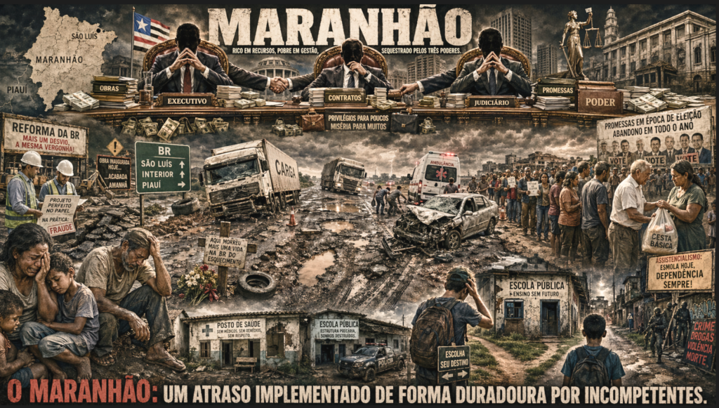 - O Maranhão: um atraso duradouro imposto por incompetentesUm estado tão rico em potencial como o Maranhão volta a desperdiçar a oportunidade de atrair investimentos e se reafirma como um dos maiores retratos da incompetência administrativa dos seus três poderes. O…