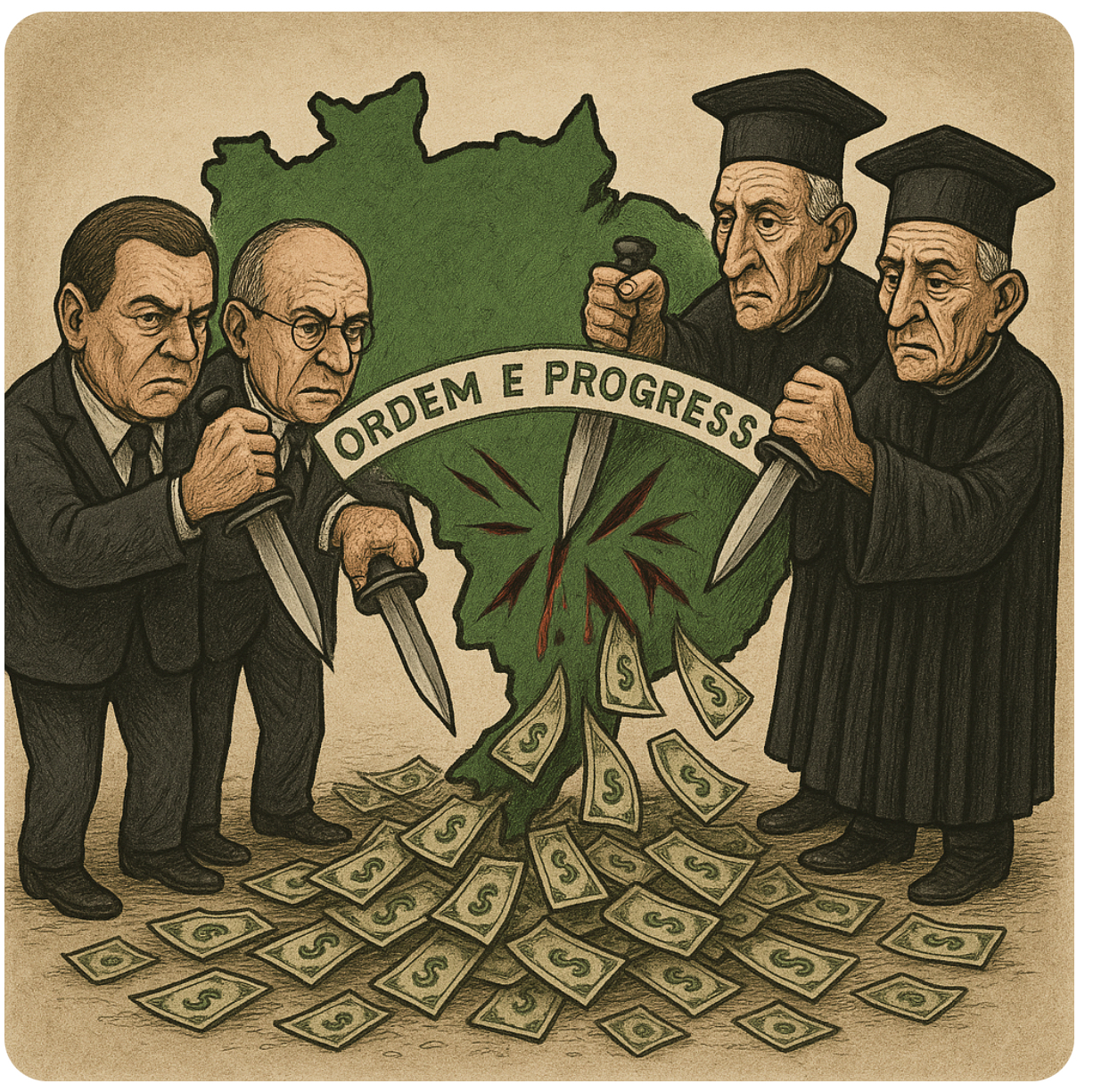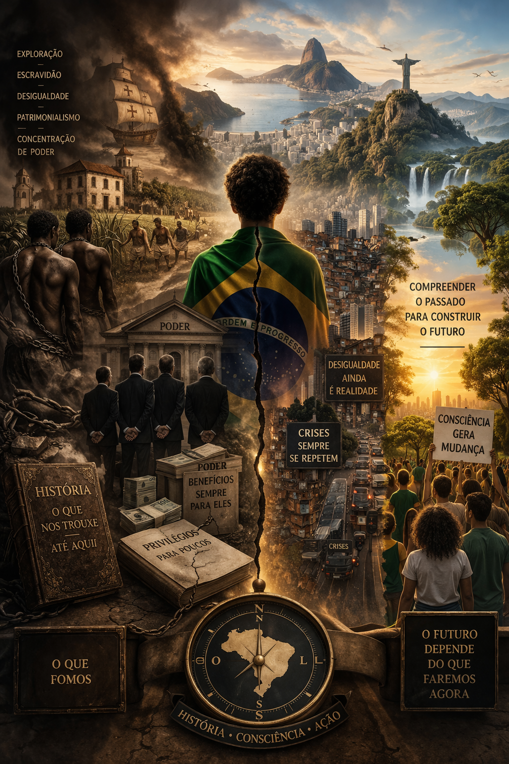 Este espaço nasce da convicção de que não é possível compreender o Brasil de hoje sem encarar, com honestidade, o seu passado. Ao longo da nossa história, construíram-se estruturas, hábitos e contradições que ainda moldam a realidade atual – muitas vezes ignorando a promessa de ordem e progresso. Mudanças profundas raramente partem daqueles que se beneficiam dessa ordem. Cabe a nós tomar consciência disso: compreender o que fomos, reconhecer o que somos e assumir o papel que nos cabe na construção do que podemos nos tornar. Porque um país com a riqueza e a beleza do Brasil já possui tudo o que precisa – falta apenas colocarmos em movimento as engrenagens da mudança.