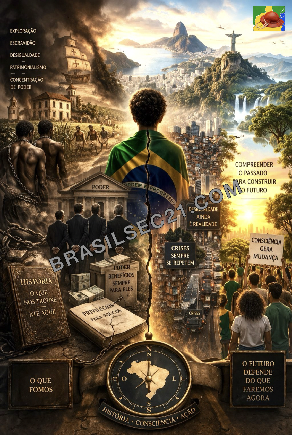 Esse contraste entre potencial e realidade é uma das chaves para entender o Brasil. De um lado, um passado que ainda governa o presente; de outro, uma paisagem que inspira esperança e resignação ao mesmo tempo. Encarar o passado, portanto, não é apenas um exercício acadêmico, mas um passo essencial para romper com ciclos históricos e transformar estruturas que persistem.