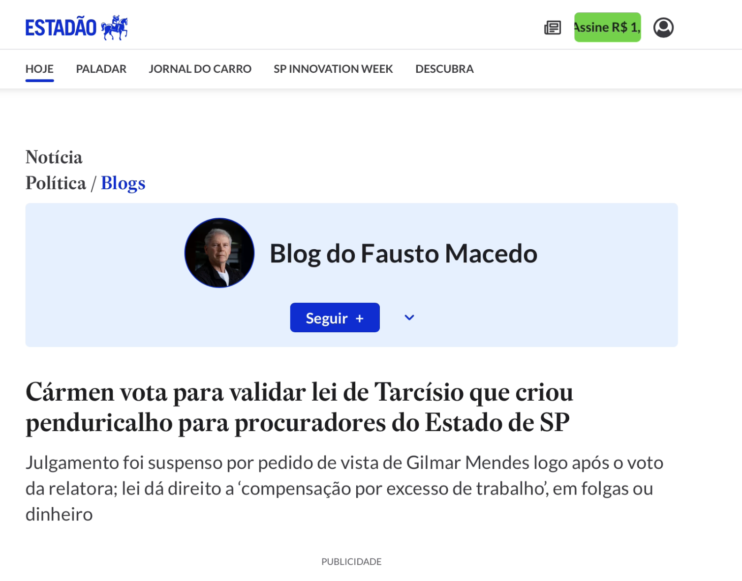 O três poderes compactuam entre si mais em benefício de si mesmos do que do povo. STF vota para validar lei de Tarcísio (Chefe do Poder Executivo de SP) que criou penduricalho para procuradores do Estado de SP. Ele pediu urgência na votação do texto. Quem estiver sobrecarregado, pode tirar um dia de folga a cada três trabalhados, até o limite de sete dias de descanso no mês, ou receber o valor em dinheiro. As compensações são custeadas com recursos do fundo de administração da PGE que foi criado em 1976 (década de muita desgraça para o povo). Tal fundo é alimentado por verbas de honorários e é mantido em segredo. O Governo de São Paulo e a Associação dos Procuradores do Estado não informaram ao Estadão quanto há no fundo – O Estadão do dia 22/08/2025 11h40 >>>